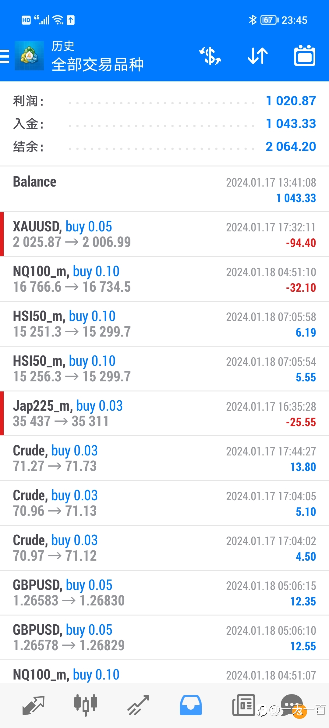 上个账户一个星期200做到700太暴力了,最后扛单扛爆了,这个新账户打算500三年做到十万,一起见证。每天公布账户情况