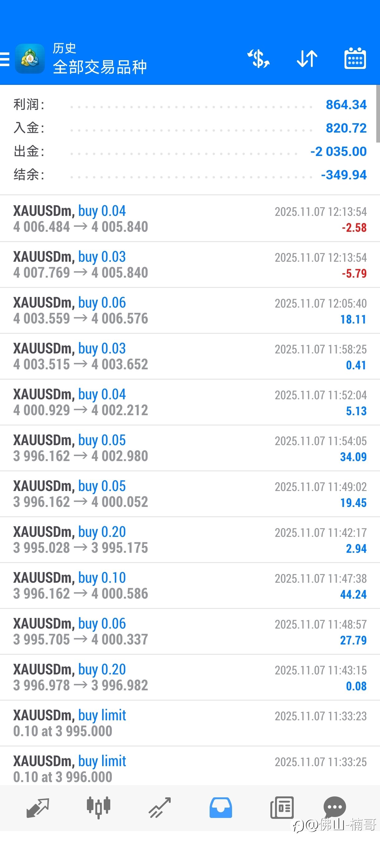 今天老账号,不知道是不是盈利太多了,感觉被精准盯着了一样,5次爆仓,4次只差一个点差,1次不超过1个点,我就纳闷了!亏了2700美金!然后就换了新账号,一路回本,最终只回了2400美金!加佣金差不多!哎,以后需要多换账号了!赚多了,太容易被盯上了!