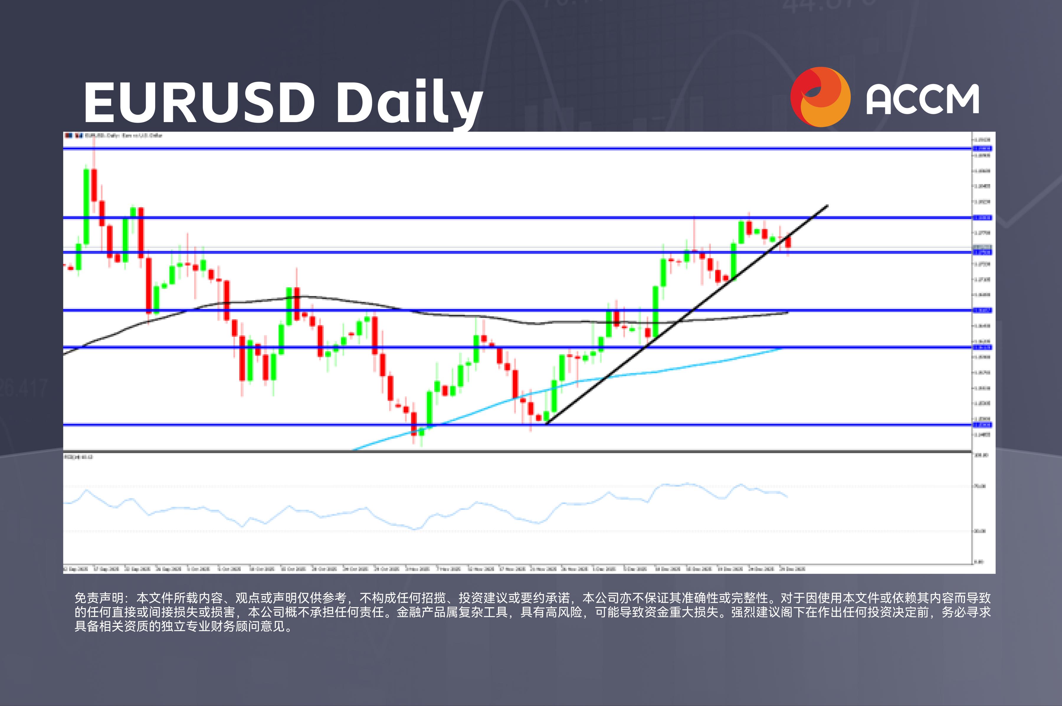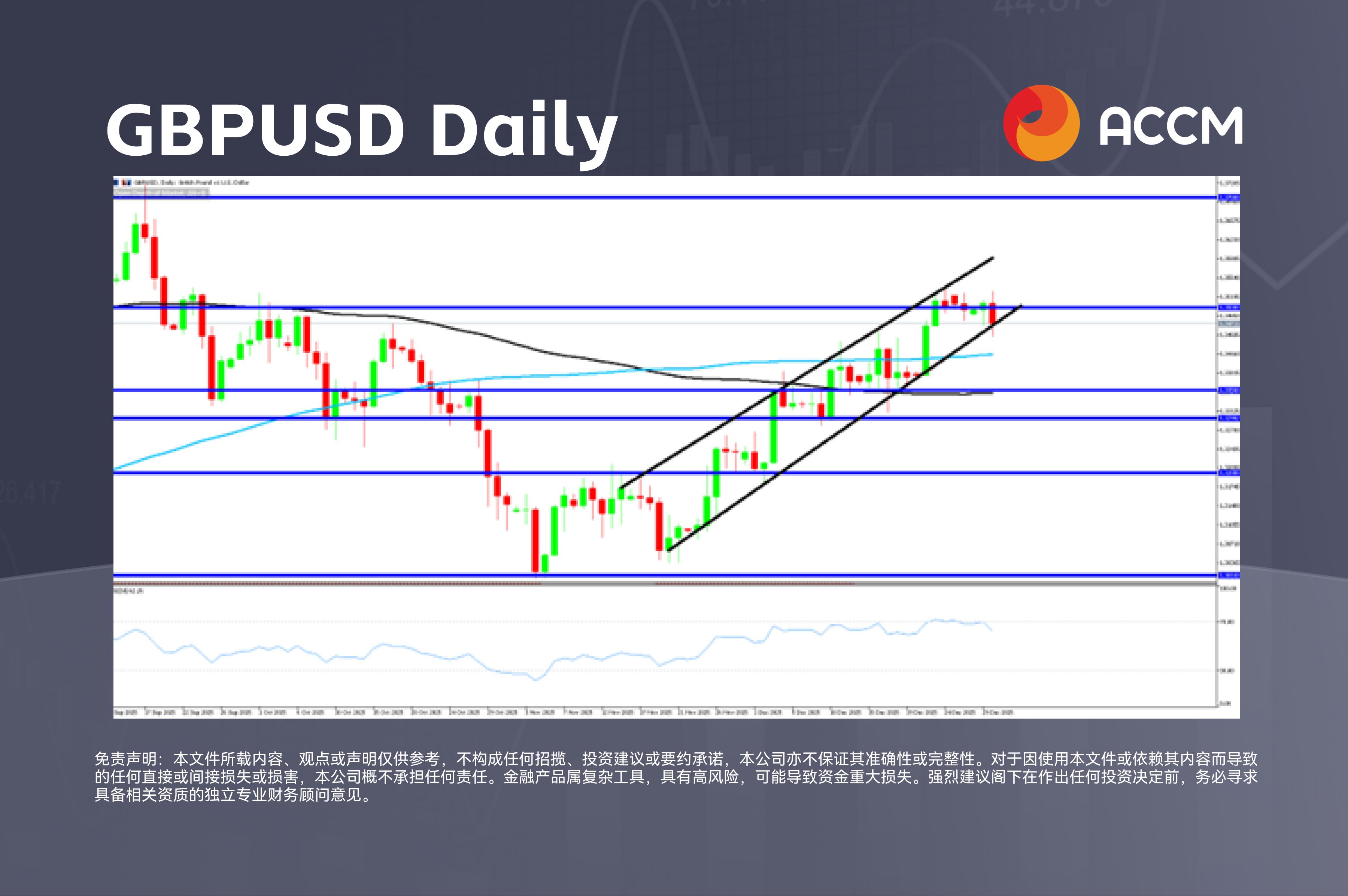美联储FOMC会议推动GBPUSD走低 美国联邦公开市场委员会(FOMC)于周二公布了最新一次会议纪要。纪要内容为市场提供了一个新的视角,显示政策制定者在是否连续第三次下调短期利率的问题上存在明显分歧。与此同时,美国10年期国债收益率当日上升逾1个基点至4.12%,而2年期国债收益率则回落至3.45%。 在消息公布后,GBPUSD 回落并测试下方上升趋势线的支撑力度,价格跌破了1.35这一关键枢轴位,目前走势显示,汇价很可能很快向下突破该上升趋势线。 GBPUSD Daily 与此同时,EURUSD 已经向下跌破上升趋势线,并在1.1750枢轴位附近获得支撑。如果价格反弹至1.18一线,预计将
