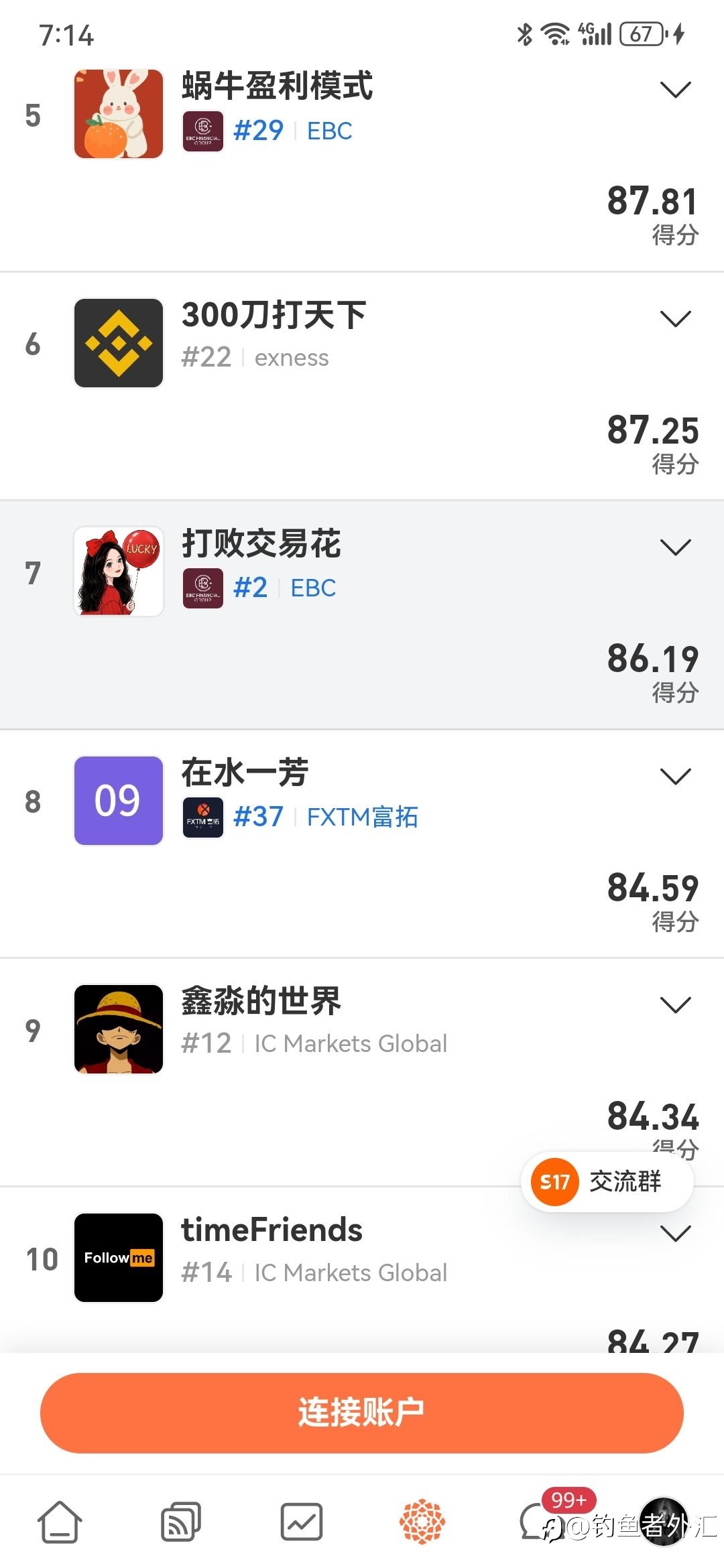 #FOLLOWME交易大赛# #S17冲榜挑战# #创作者# 格局与短板并存的交易生态 总排名72位、71.32的得分位列中游,而榜单头部选手如“李永生”“神泣”则凭借95 的高分拉开差距,目前来说展现了不同交易选手的能力分层,也折射出外汇交易中收益、风控与操作节奏的核心博弈逻辑。 从自身的核心数据来看,其43.95%的收益率展现出一定的盈利能力,修改1:500杠杆后得分前进了,却也暗藏风险——21.