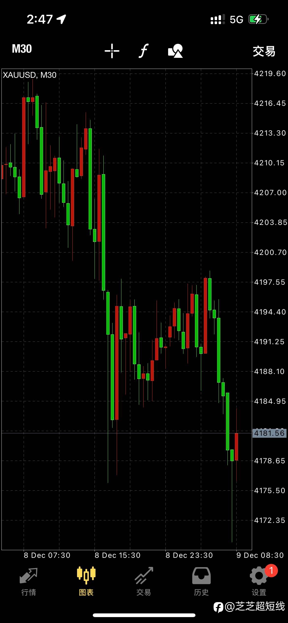 布局4175多,成功入场,现价4181,已成功拿下6个点位,看到85附近