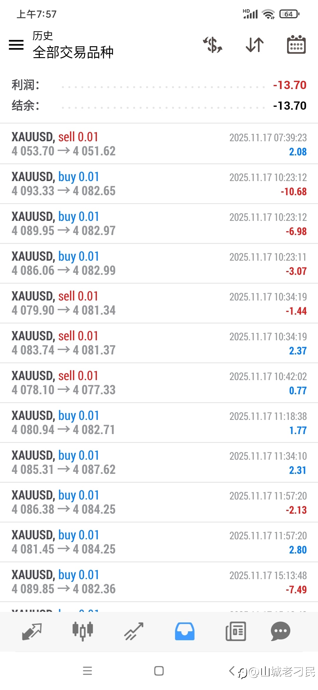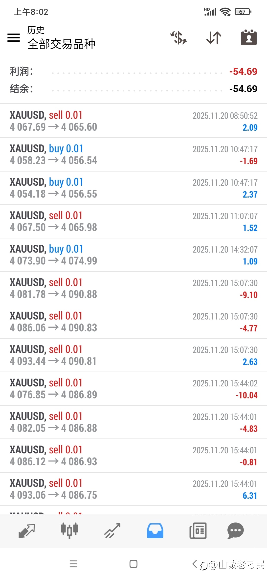 重走来时路,第85天。 有所亏损。 这行情真难猜啊😭 做多它跌,做空它涨。 非农利空,行情诱多,上当, 真正开始跌,又不敢追了。 跌了几十美金,后半夜居然又涨回来了。 ... 慢就是快,慢就是快。 加油!加油!
