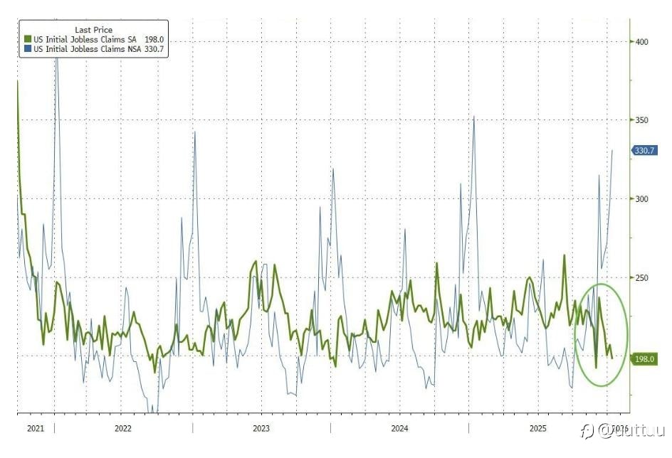 周四(1月15日)金价正面临一场意想不到的下滑。现货黄金价格从周三的创纪录高点回落,收报4615.73美元/盎司,跌幅约0.2%,而美国期金也收低0.3%。随着伊朗局势缓和,进一步削弱了黄金的避险需求。周五(1月16日)亚市早盘,现货黄金延续跌势,目前交投于4607美元/盎司附近,跌幅约0.2%。 二、美国就业数据超预期 周四美国劳工部公布的数据显示,上周初请失业金人数意外下降9000人,经季节性调整后仅为198000人,远低于经济学家预期的215000人。这一意外惊喜直接推动美元指数创下六周新高,触及99.49,并最终收于99.35,涨幅0.28%。美元的走强使得以美元计价的黄金对海外买家变
