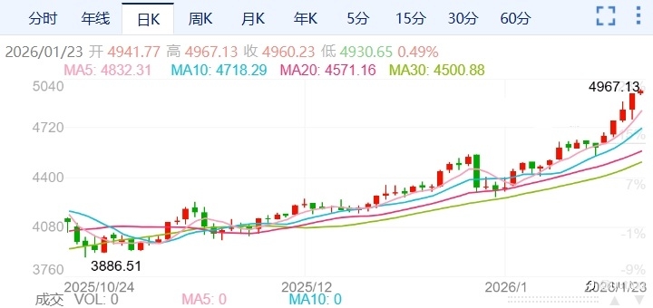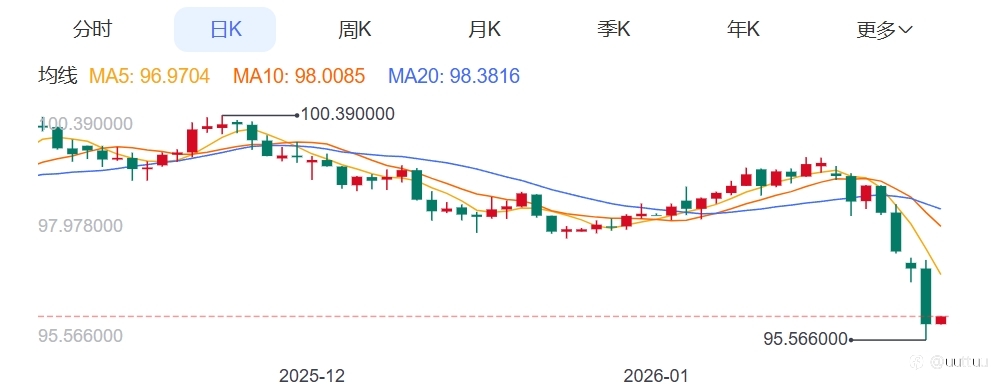 在2026年的开年之际,全球黄金市场迎来了一场史无前例的狂飙盛宴。现货黄金价格周四(1月22日)首次突破每盎司4900美元大关,并持续刷新历史新高,直至周五(1月23日)亚市早盘,截止07:57,触及4960.43美元/盎司的高点。作为一种传统的避险资产,黄金在当前复杂的国际环境中脱颖而出,成为投资者追捧的焦点。 一、美元走软、美联储宽松 美元的持续走软为黄金价格提供了坚实支撑。周四美元指数下滑0.5%,收报98.28,逼近三周低点,这使得以美元计价的黄金对海外买家更具吸引力。特朗普的格陵兰立场逆转后,避险货币美元小幅下跌,而欧元和英镑等风险敏感货币走强,进一步凸显了美元的相对疲弱。分析师认为