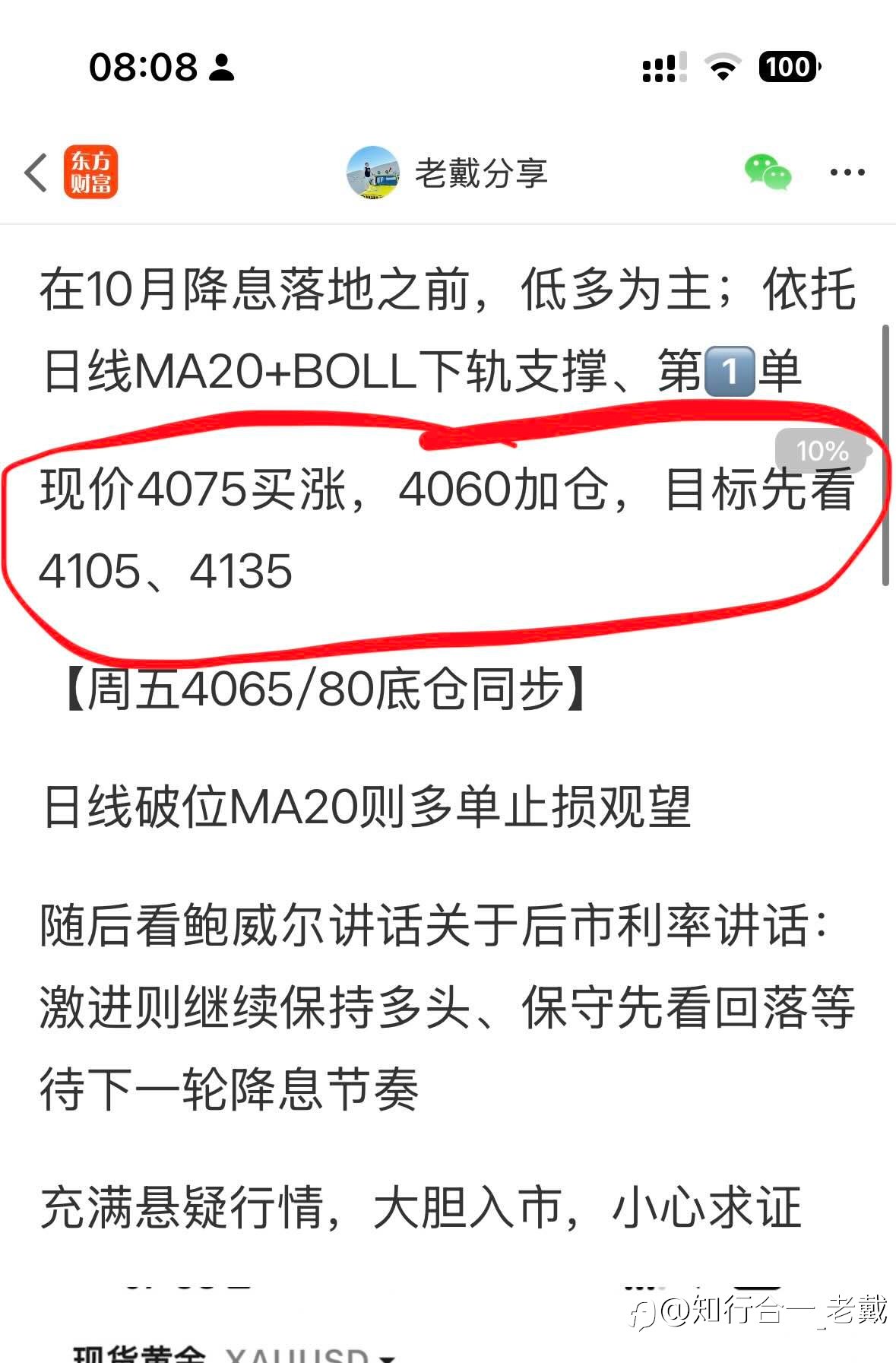 在10月降息落地之前,低多为主;依托日线MA20+BOLL下轨支撑、第1️⃣单 现价4075买涨,4060加仓,目标先看4105、4135 【周五4065/80底仓同步】 日线破位MA20则多单止损观望 随后看鲍威尔讲...