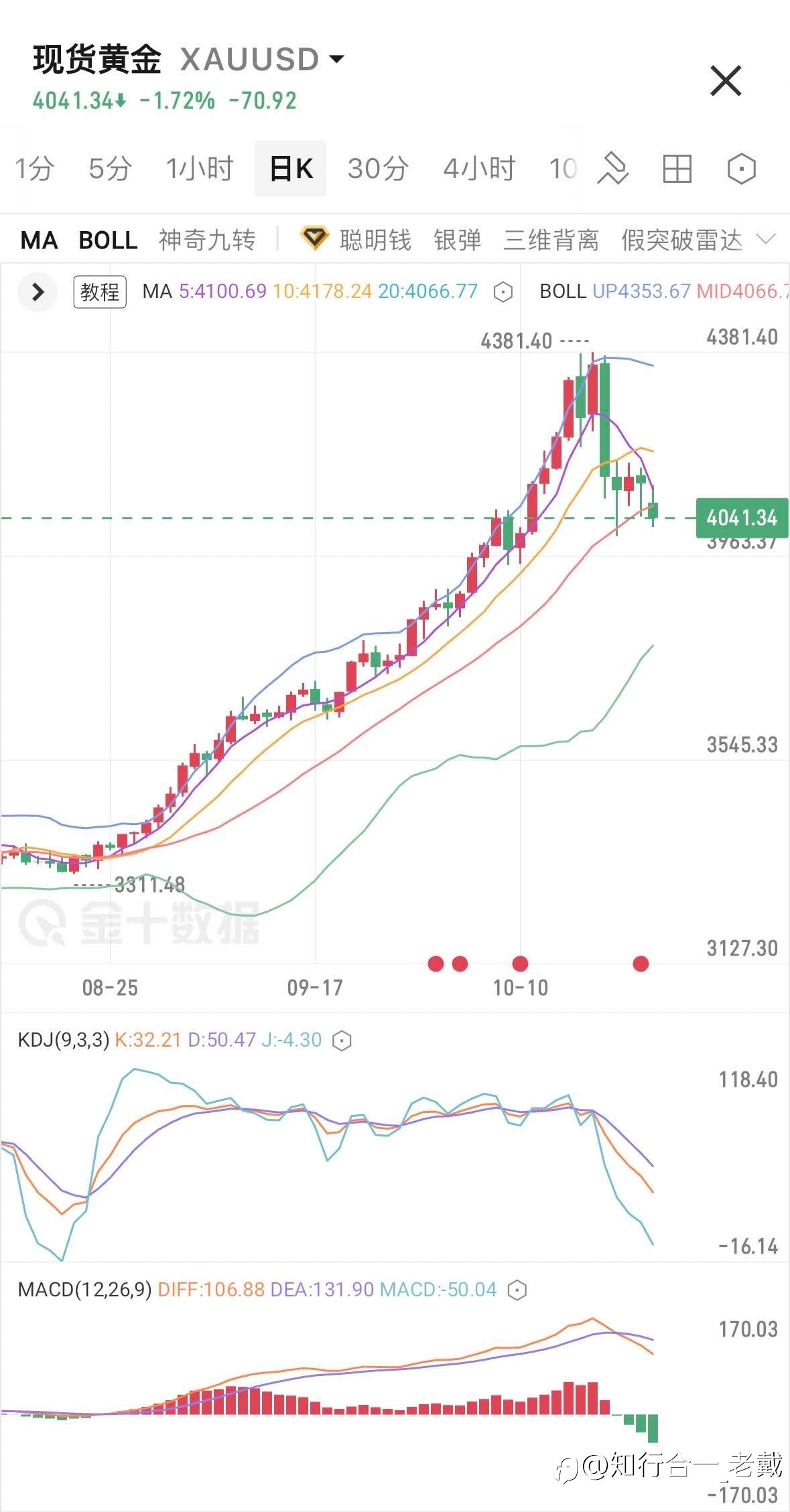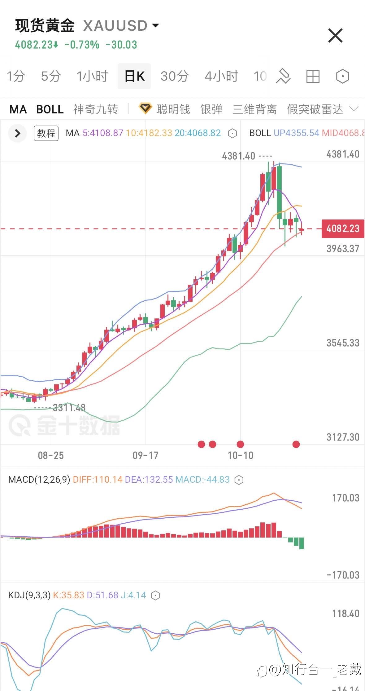 周四黄金如期宽幅震荡,老戴先多后空,账户增长率35% 早盘4075抄底多连续止盈4125、4145单边拿下70$行情 尾盘4153抄顶空止盈4115、单边拿下38$行情 敲黑板:目前停摆+贸易情况带来的上涨已...