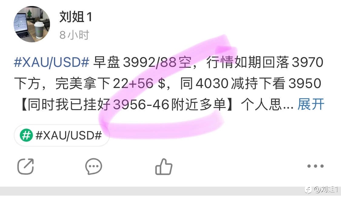 早盘3985/75附近多,现价3996,11+21💲入袋,我已减仓