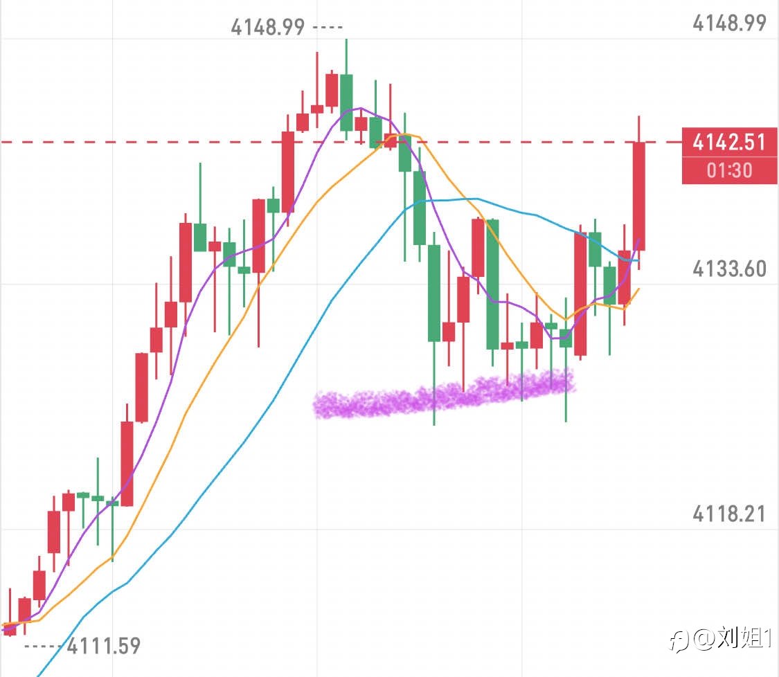 早盘交易思路 现价4137附近我多了(稳健可等待回落4118附近多),刘姐隔夜4085多单继续持有!目标统一看4160-4200区间,顺势跟进不恋战,风控带好稳步推进,个人思路仅供参考!