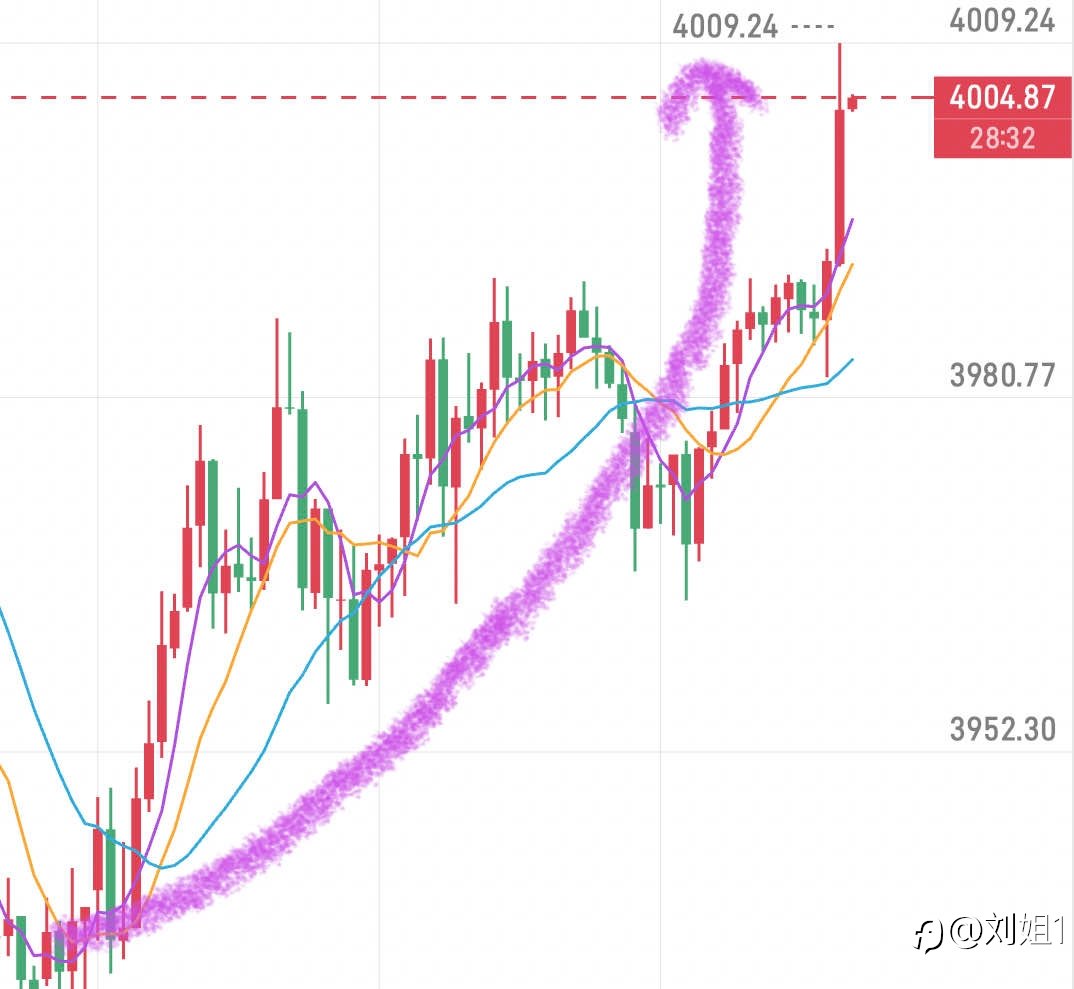 刘姐4030/3998/92空,如期止盈3950,单边吃下80大点!反手3956/46/37多,最高反弹3958,我已出高留低,个人继续上看3965-85,个人看法仅供参考。